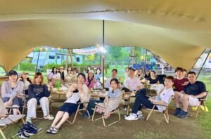 On the first day, the team arrived at Songlan Mountain Beach, where they enjoyed soft sands, fresh sea air, and time by the water. In the evening, everyone gathered for a lively BBQ party and bonfire under the stars, with music, dancing, and great food.